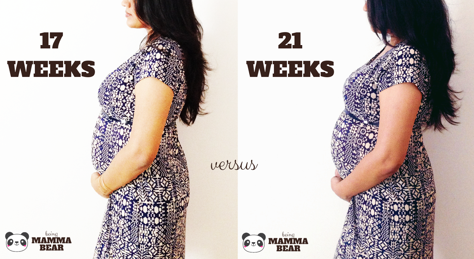 Here’s what my Bump looked like this weeek and a comparison from 4 weeks ago, i.e., at 17 Weeks.