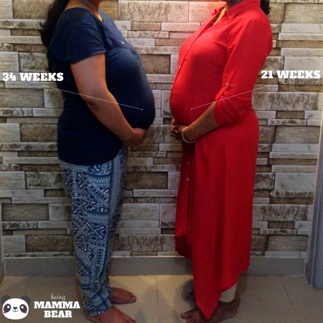On Saturday, before we left for Bangalore, I took a picture of my bump for 21 Weeks. I usually do that on Sunday but I knew I wouldn’t be home and I needed it to be consistent with all the other pictures, so I had to do it at home.