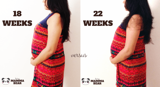 Here’s what my Bump looked like this weeek and a comparison from 4 weeks ago, i.e., at 18 Weeks.